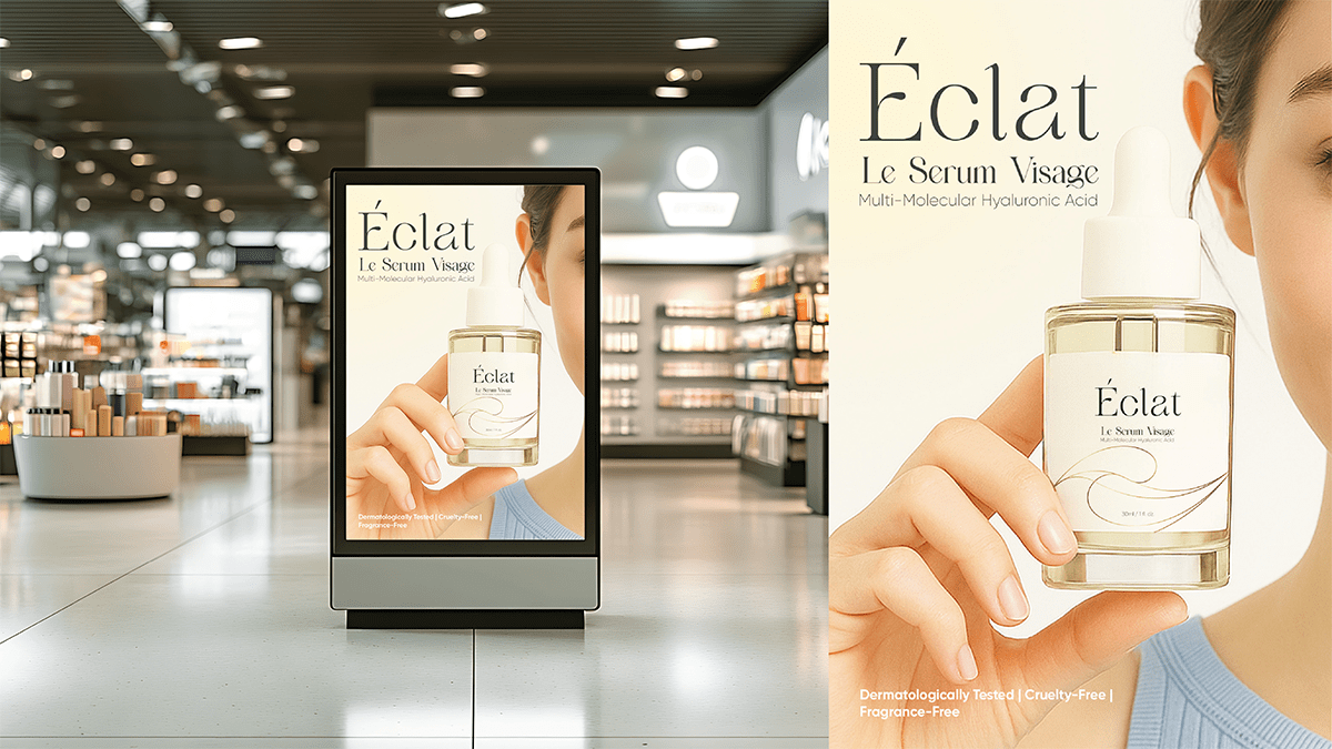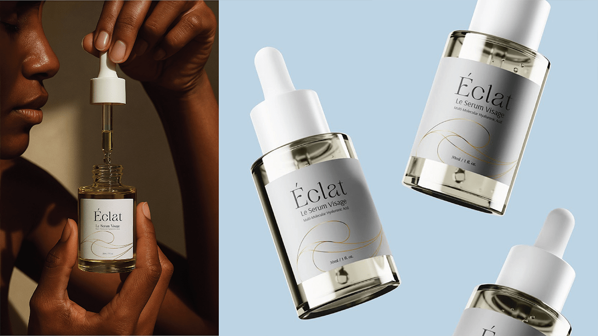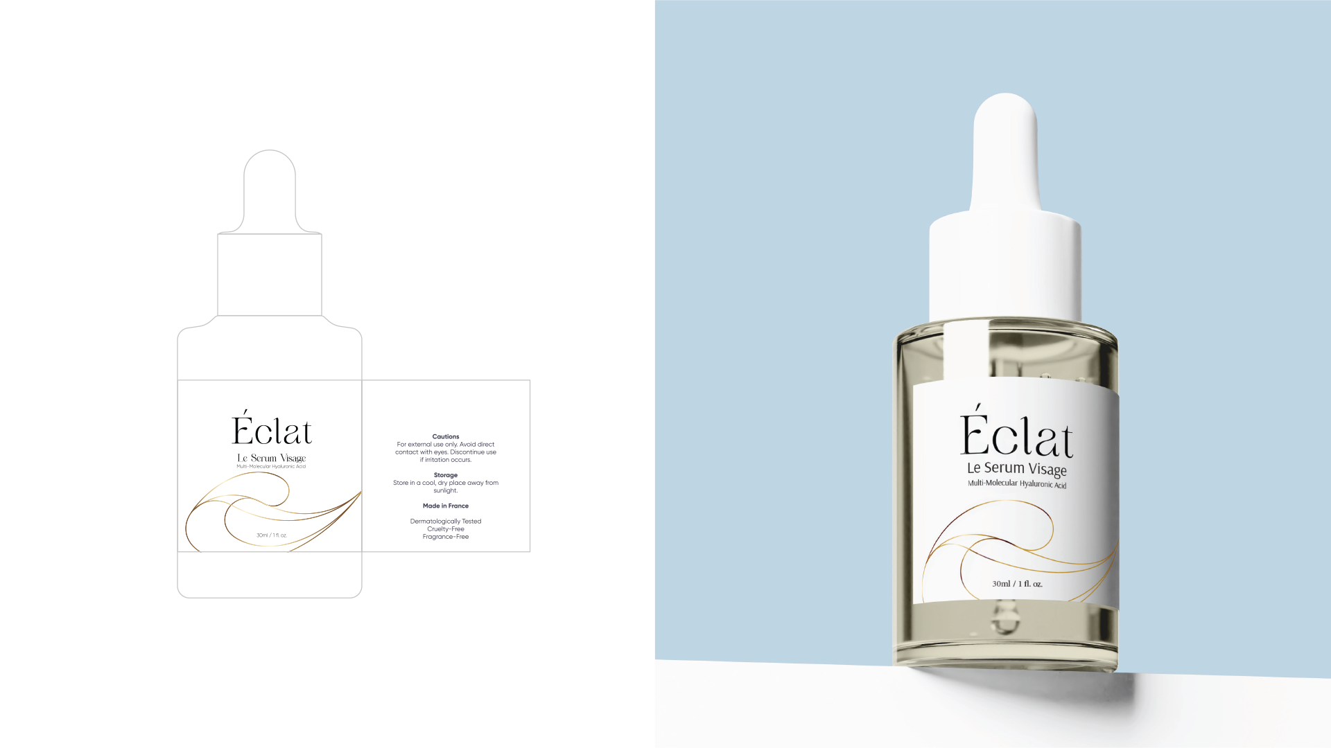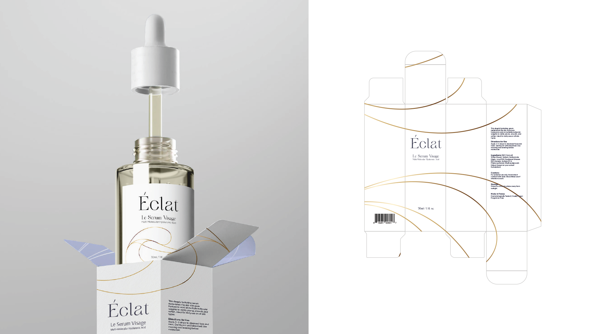 Éclat is a premium skincare and wellness brand created to elevate beauty both inside and out. In a crowded market of anti-aging promises, it needed to stand apart as both scientifically validated and emotionally aspirational. We developed a cohesive identity system that united topical skincare and ingestible supplements under one brand universe. Minimalist typography, a refined palette of ivory, peach, and champagne gold, and modular packaging brought purity and elegance to the forefront, while a confident yet warm voice balanced authority with accessibility. The result positioned Éclat as a trusted expert brand that feels both luxurious and modern.